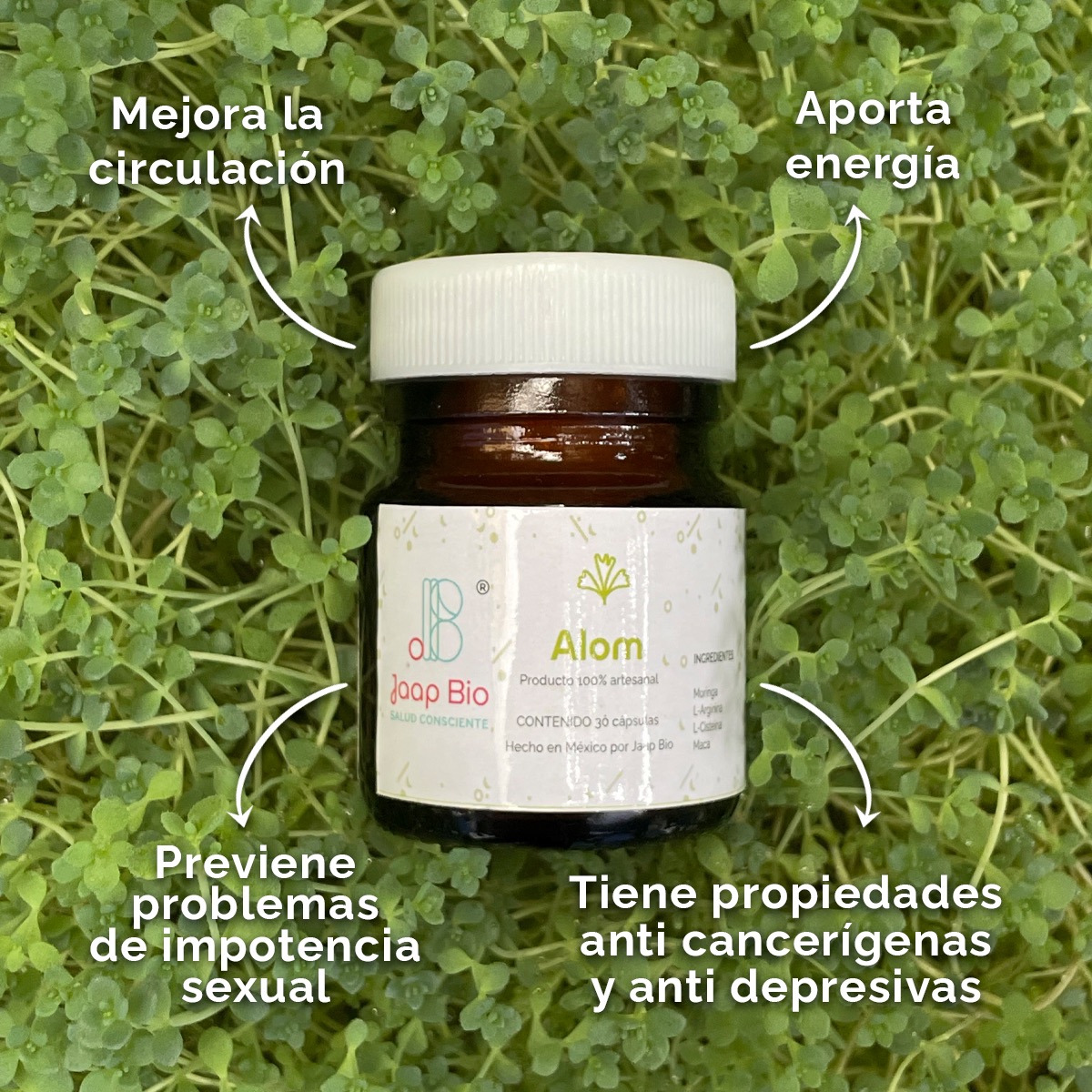 Alom también contiene L-arginina que es uno de los 20 aminoácidos que forman las proteínas del cuerpo humano. En combinación con la Maca puedes disfrutar de los beneficios de Alom como el aumento de energía y mejora en el desempeño sexual.